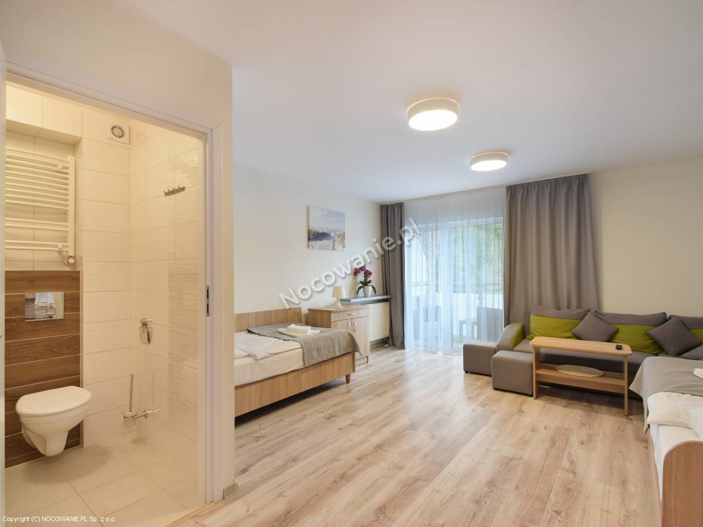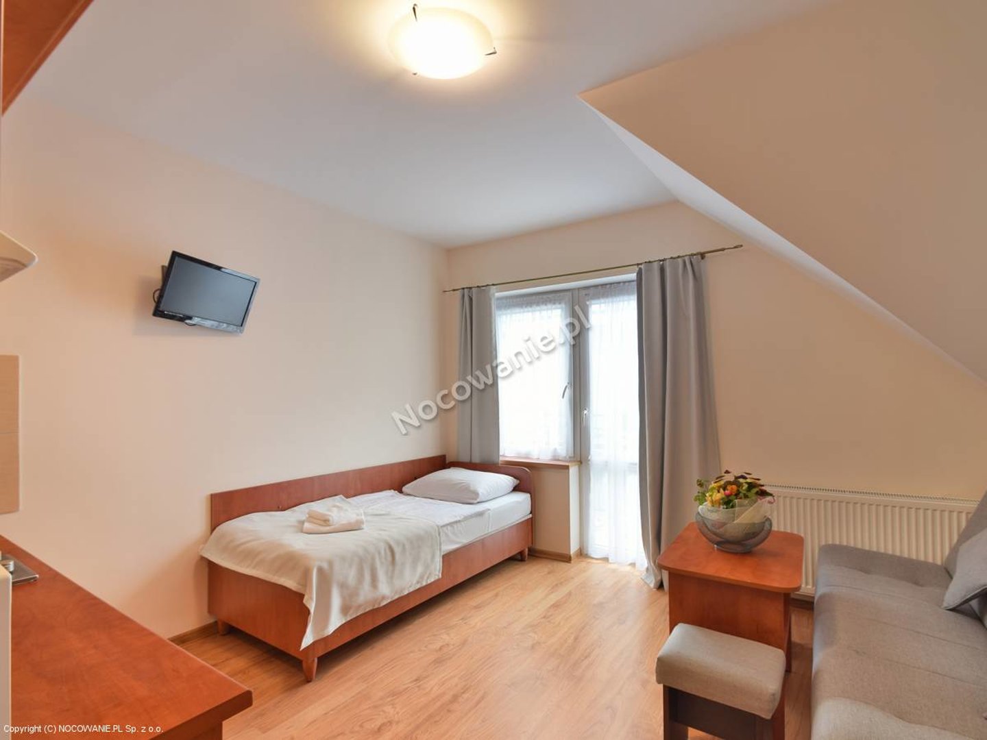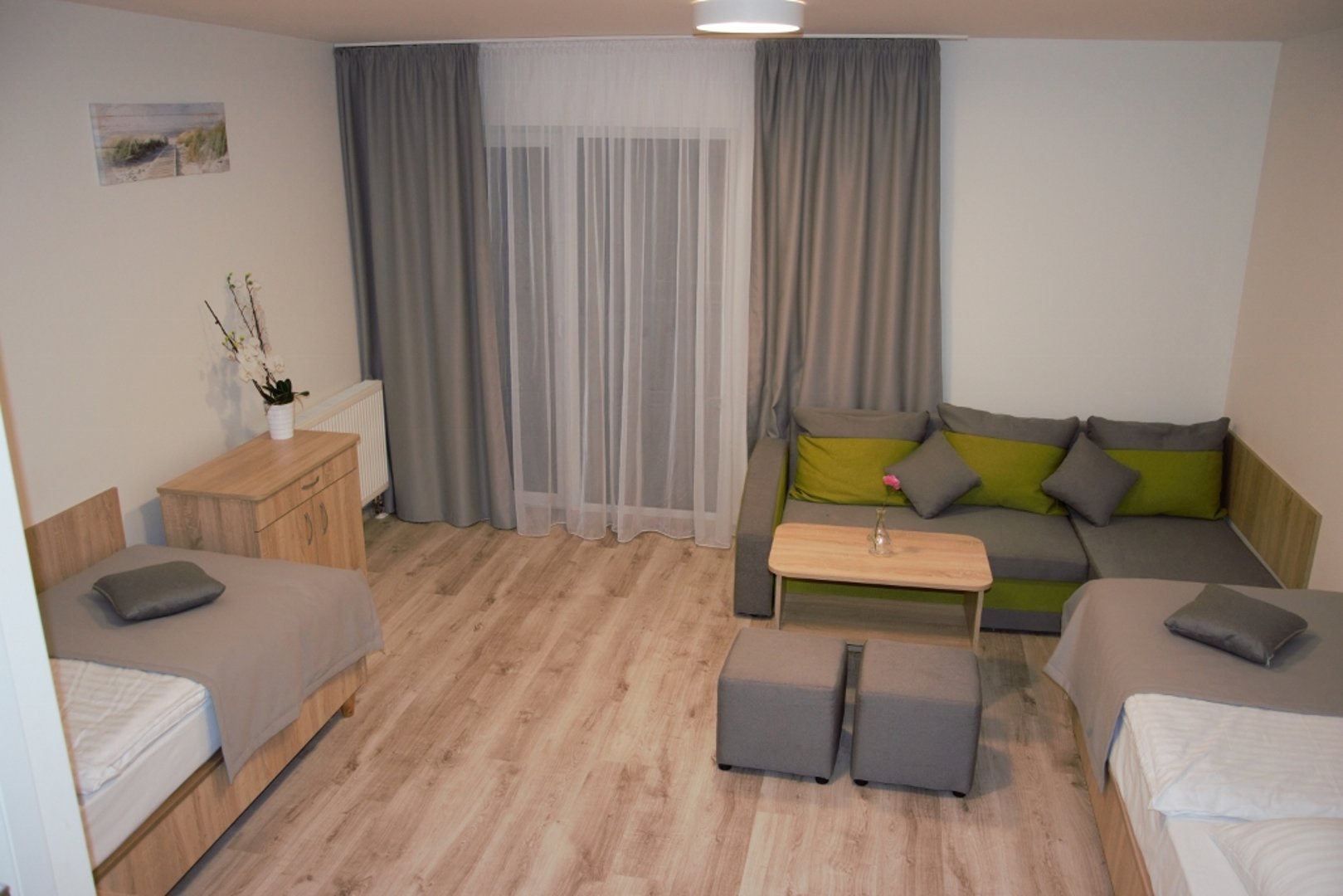 Pokój 2-osobowy z łazienką, balkonem i w pełni wyposażonym aneksem kuchennym (czajnik elektryczny, garnki, patelnia, sztućce, szklanki talerze, płyta grzejna). W pokoju znajdują się 2 łóżka hotelowe + rozkładana sofa ( długości 140 cm).